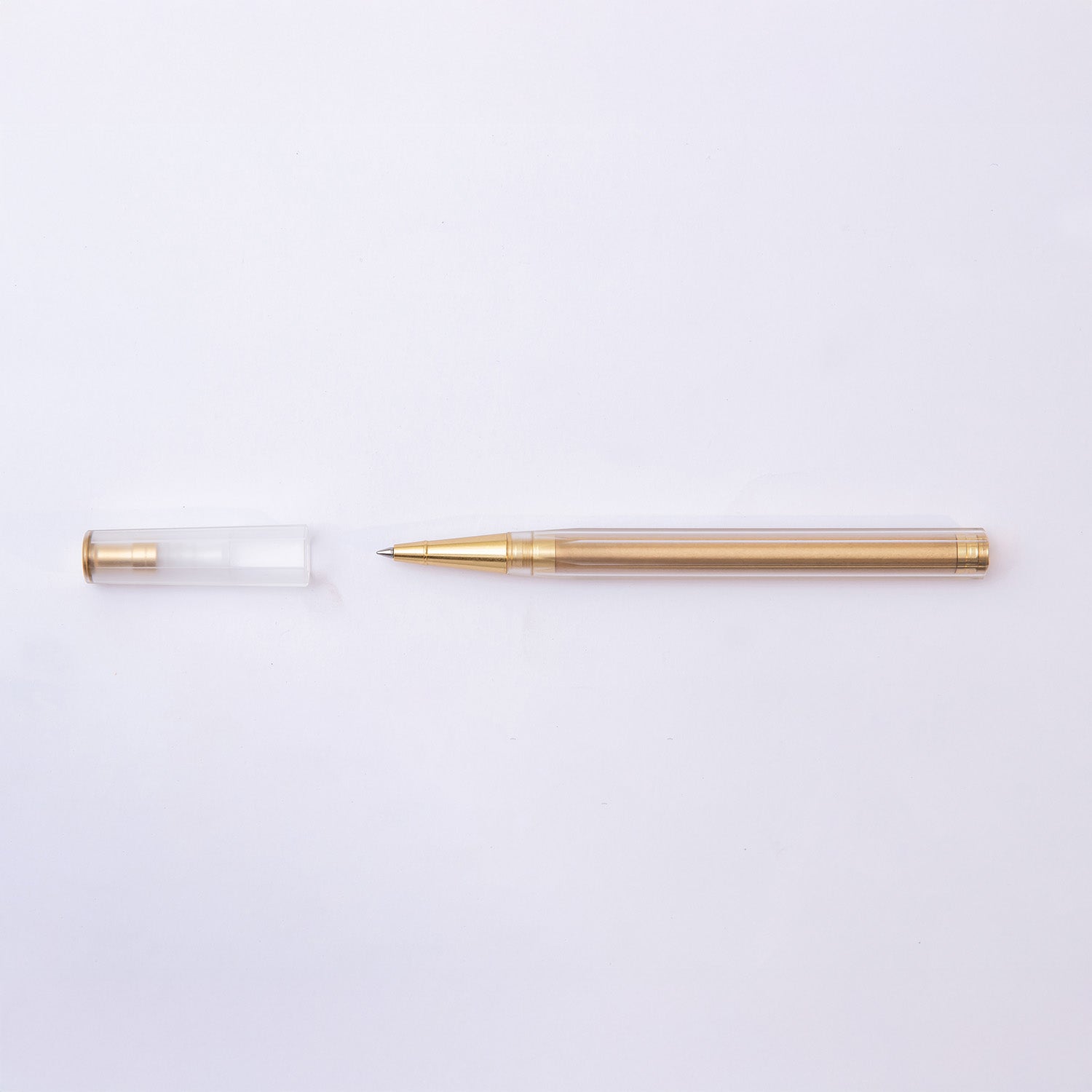 • The hexagonal body, crafted from brass and matte acrylic , provides visual warmth and a balanced writing experience. The semi-transparent finish softens the color and allows a glimpse of the interior, while the brass evolves over time, creating a unique and personal patina.