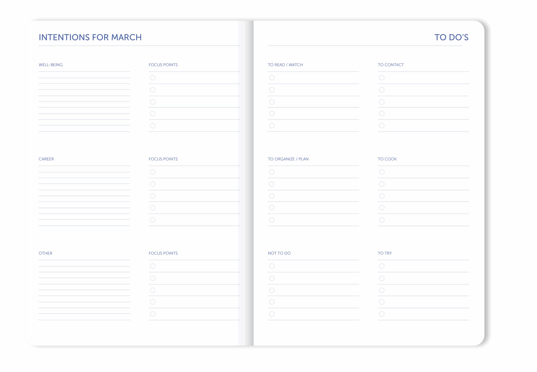 • This is the only monthly planner that covers 24 months. In addition to classic monthly planning, there's space for reflection on different topics such as well-being and connections. It's a planner designed for those of us who don't need to plan every hour of the day, but still want a broad overview.